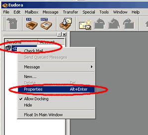 Eudora, right click on your personality to open the menu and then click