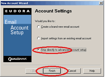 Wizard select 'Skip directly to advanced account setup. Then click on