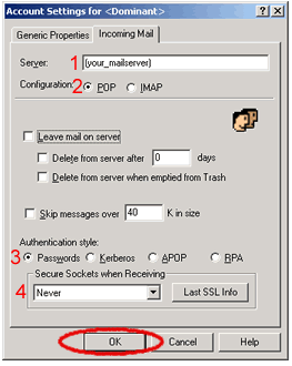 the name of your incoming mailserver, select POP for the configuration,