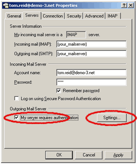 the 'Servers' tab check the box labelled 'My server requires authentication'