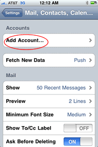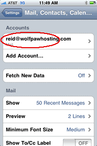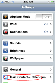 Touch 'Mail, Contacts, Calendars' in the settings list