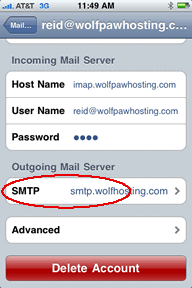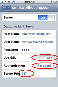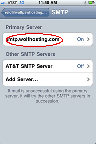 Scroll down and touch 'SMTP' and then, under Primary Server,