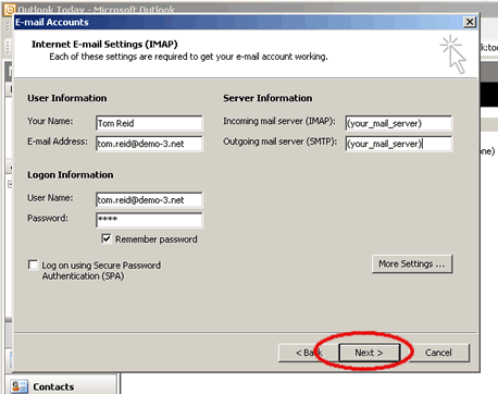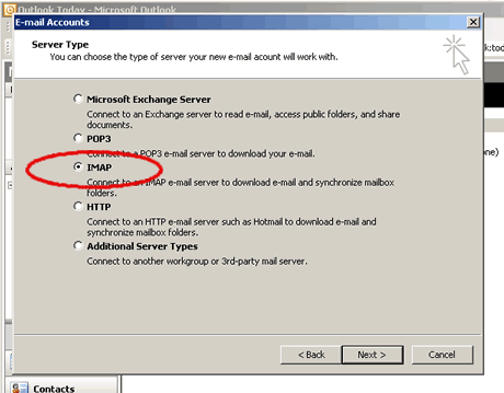 'IMAP' and click on 'Next' to continue.