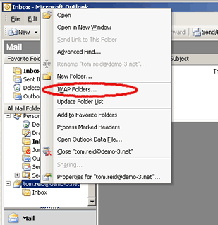 the SPAM folder) right-click on the parent folder with your email address.