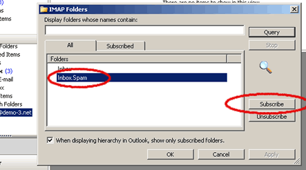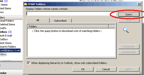 IMAP Folders window click on the 'Query' button to get a list of all of