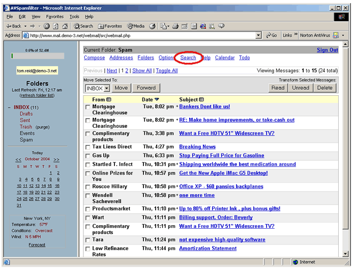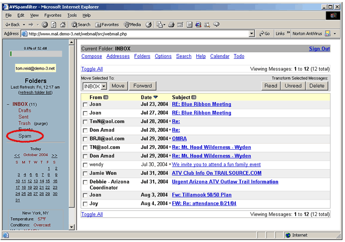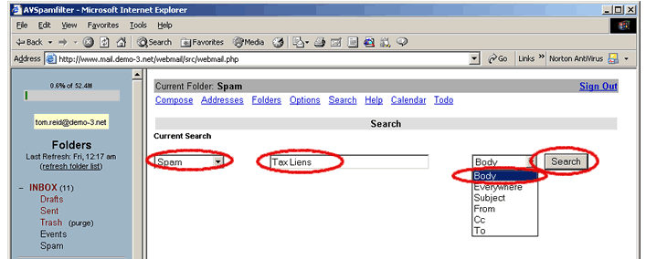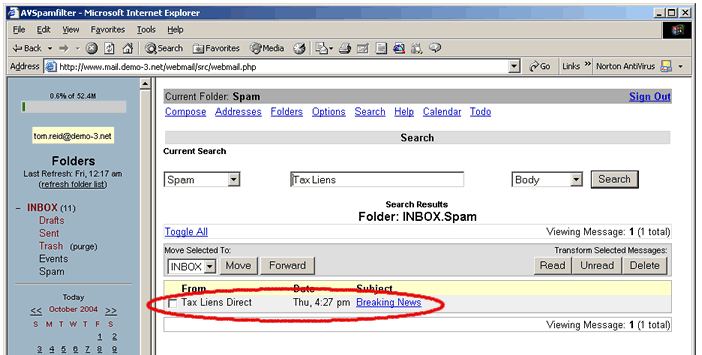 we'll use web email to examine the Spam folder. Please