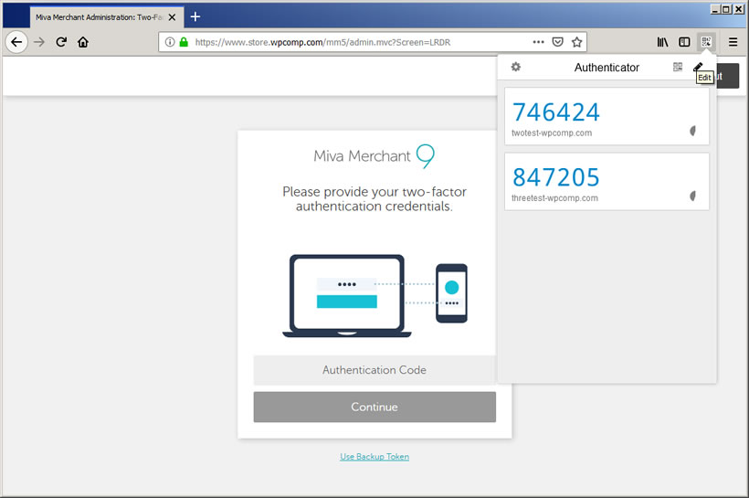 As we'll show you below, once setup properly, the Google app and the two browser plugins will all generate the same one-time password for your Miva username and you can use whichever is more convenient.