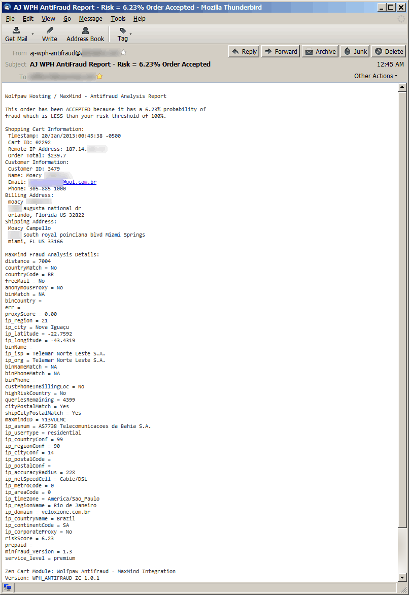 Sample Merchant Notification Email for Suspicious Order